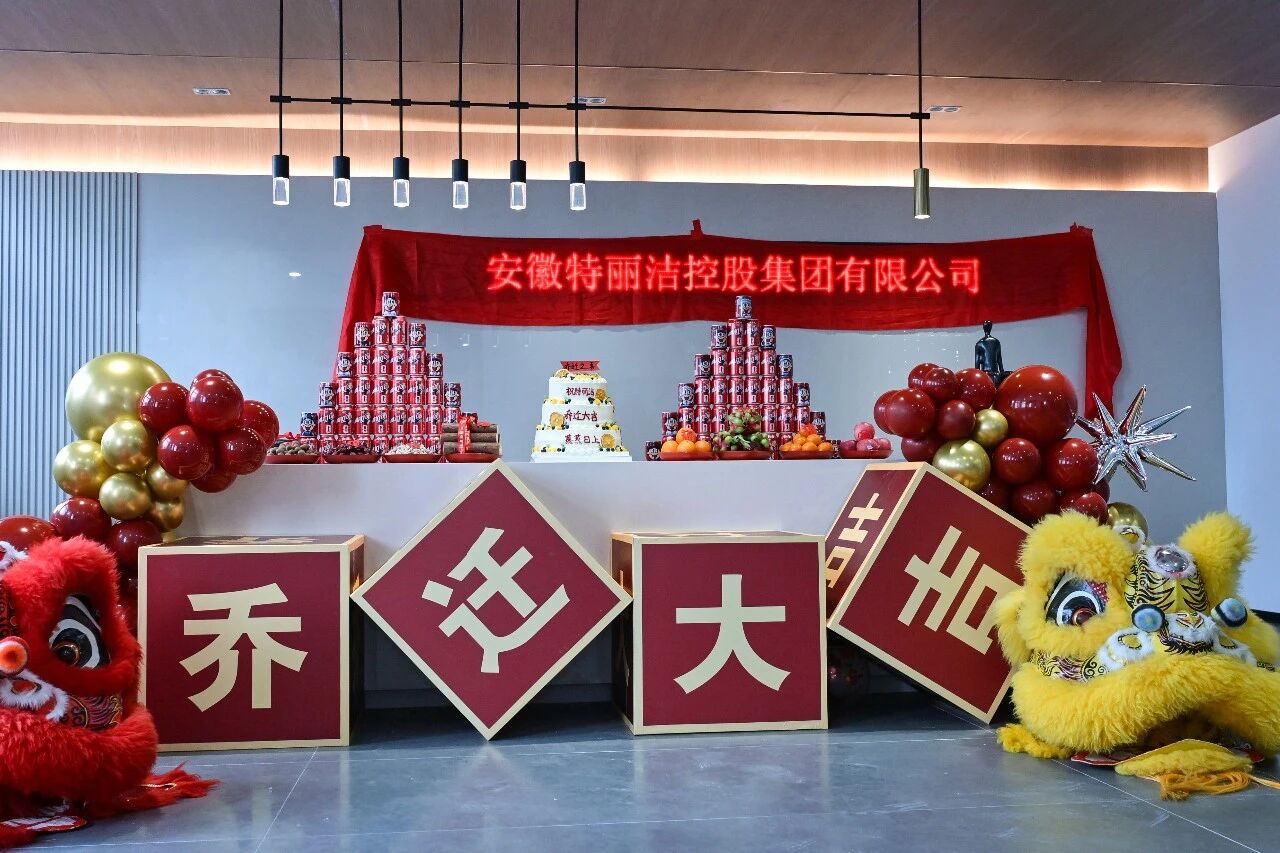 Subsequently, Chairman Zhang Guangming opened the "wealth gate" symbolizing prosperity, making a beautiful wish for the company to have abundant financial resources and thrive in the new location. At the moment when the financial door opened, the atmosphere was lively and joyful. Chairman Zhang Guangming, President Zhang Jingxiao, and General Manager Zhang Chenglong entered the venue one after another, holding items symbolizing good luck and symbolism. Their congratulatory speeches echoed one after another, conveying the infinite aspirations of all Telijie employees for the company's future.