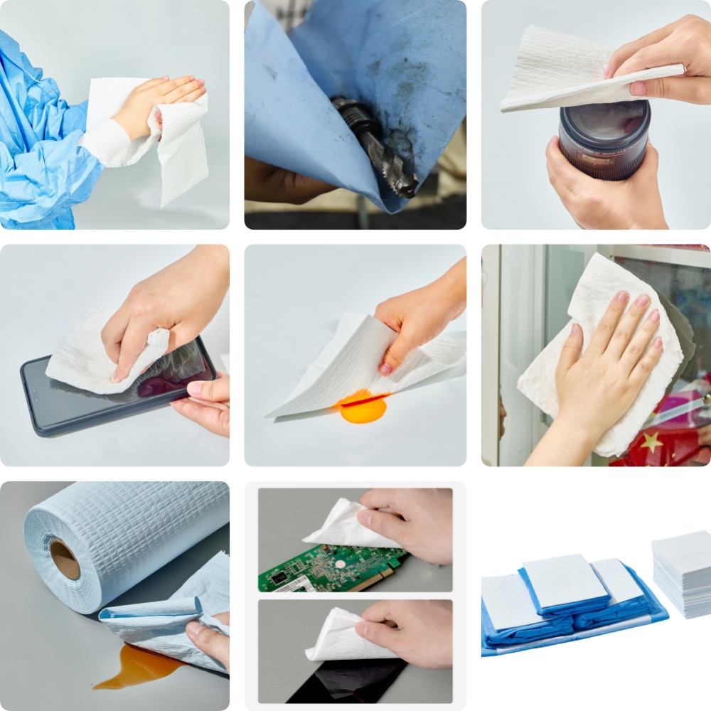 * 濡れた状態と乾いた状態の両方で使用でき、湿潤引張強度が強く、糸くずが出ず、柔らかい詰め物が落ちず、物体の表面を傷つけず、静電気を発生せず、蛍光剤や漂白剤を含まず、環境を汚染しません。