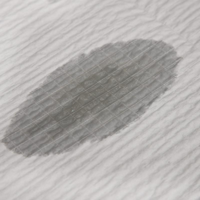 * このタオルは、両面にナイロングリッドを2層のティッシュで挟んだ4層構造です。上下のティッシュ層が吸水性と柔らかさを実現し、中間層のナイロンスクリムネットが強度を高め、乾いた状態、濡れた状態を問わず吸水性を高め、糸くずの発生を抑えます。