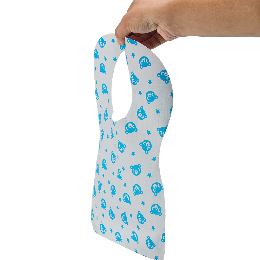 防水・防油: PE バリア付きの防水使い捨てベビービブは、漏れを防ぎ、授乳中の油やこぼれに耐えます。