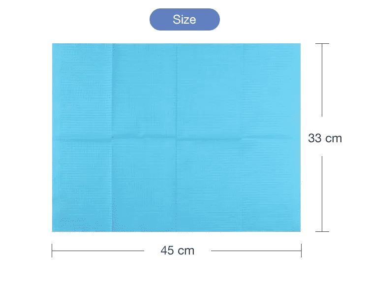 A:サイズは45×66cmで、歯科治療中に大人と子供の両方の患者を広範囲に覆い、衣服や周囲を保護するのに十分な大きさです。